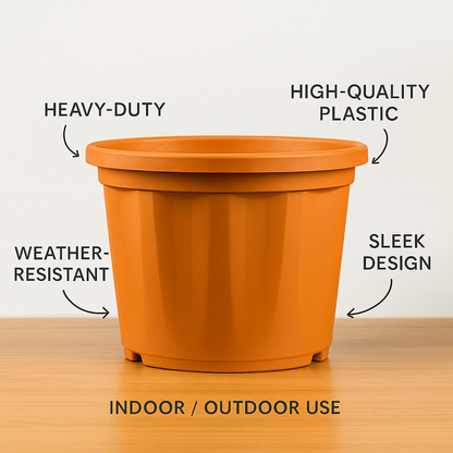 The Blossom Pot 20 inch is a premium heavy-duty planter designed for both indoor and outdoor gardening. With a spacious design and strong build, this pack of 5 pots is perfect for growing large plants, shrubs, and decorative trees. Available in black, terracotta, and orange colors as selected, these pots combine durability with style.
