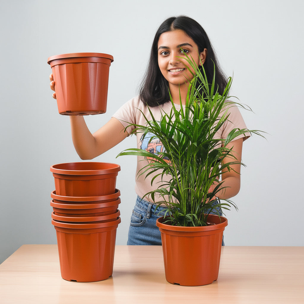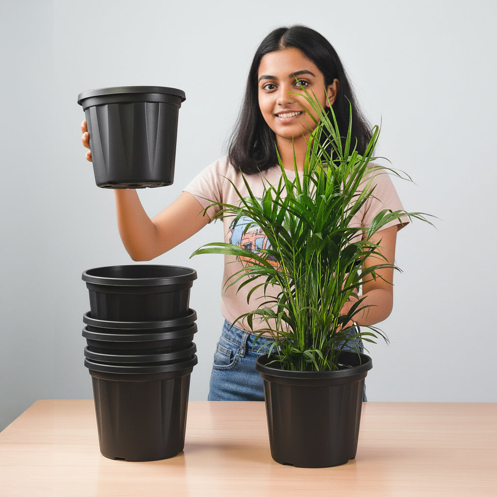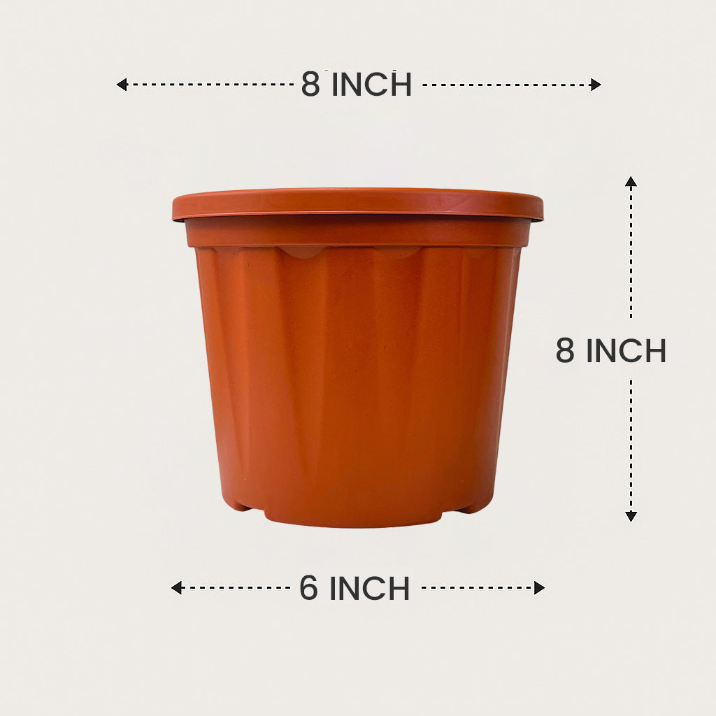 The Blossom Pot is a heavy-duty, UV-resistant plastic planter ideal for both indoor and outdoor spaces. Designed with a stylish curved finish, this pack of 20 includes assorted sizes— 08 inch, as selected. Available in black, terracotta, and orange color options, these planters offer durability and elegance for every plant setup.