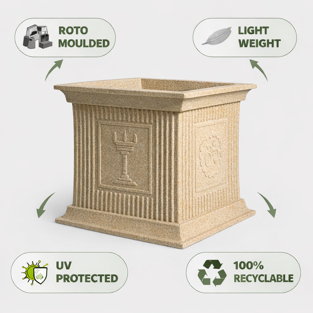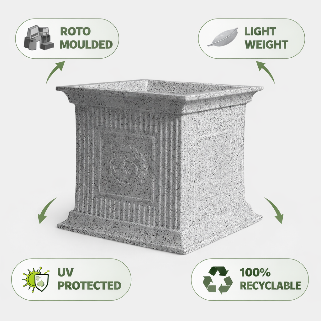 Roto-molded planters are thicker, stronger, and more durable than regular plastic pots. They retain color longer, withstand harsh weather, and provide better insulation for plant roots.