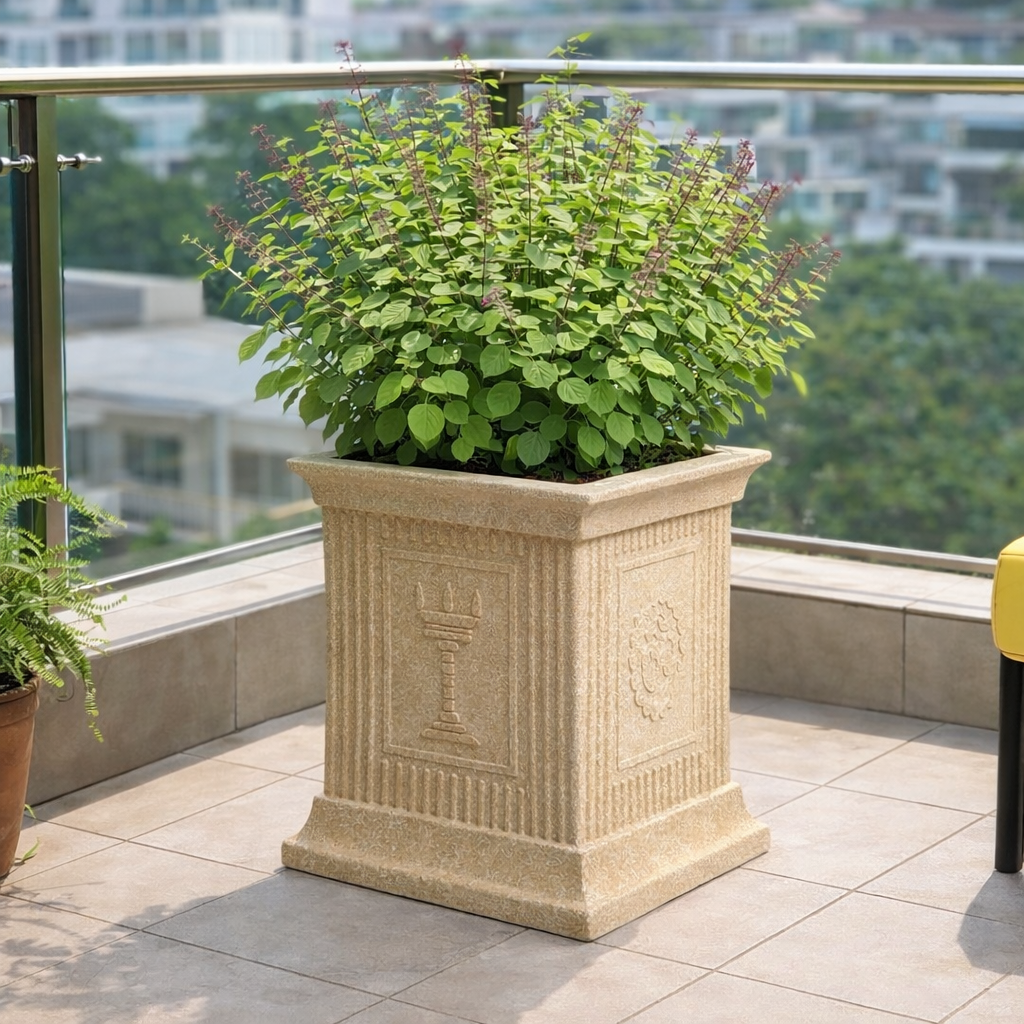 Premium Tulsi Planter 12 Inch is crafted from roto-molded, UV-protected, BPA-free plastic for long-lasting outdoor use. Its sturdy yet lightweight design makes it ideal for Tulsi plants in balconies, terraces, and gardens, offering durability, weather resistance, and an elegant finish.
